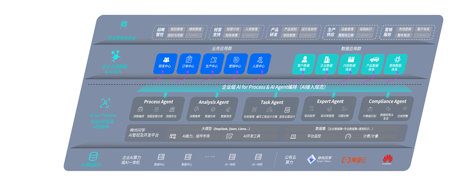 龙门国际问学智车解决方案是一套基于AI技术的汽车行业智能化系统,,,,覆盖从底层算力到顶层AI应用的全栈方案。。方案由算力层、、、、模型层和应用层组成:算力层,,,,方案支持多种一体机配置,,具备云端灵活部署、、、、多云适配以及动态优化计算资源的能力;模型层,,,,龙门国际问学平台版提供了企业级AI应用一站式构建与管理平台,,,,支持基于后训练强化技术的汽车企业专属模型的训练、、、评测和运营;应用层,,龙门国际问学DeepSeek版提供包括超级员工、、、、智能招采、、智能营销、、、智能客服、、AI for BI等一系列解决方案,,,可助力汽车行业实现数字化转型,,,让管理更智能、、响应更敏捷。。